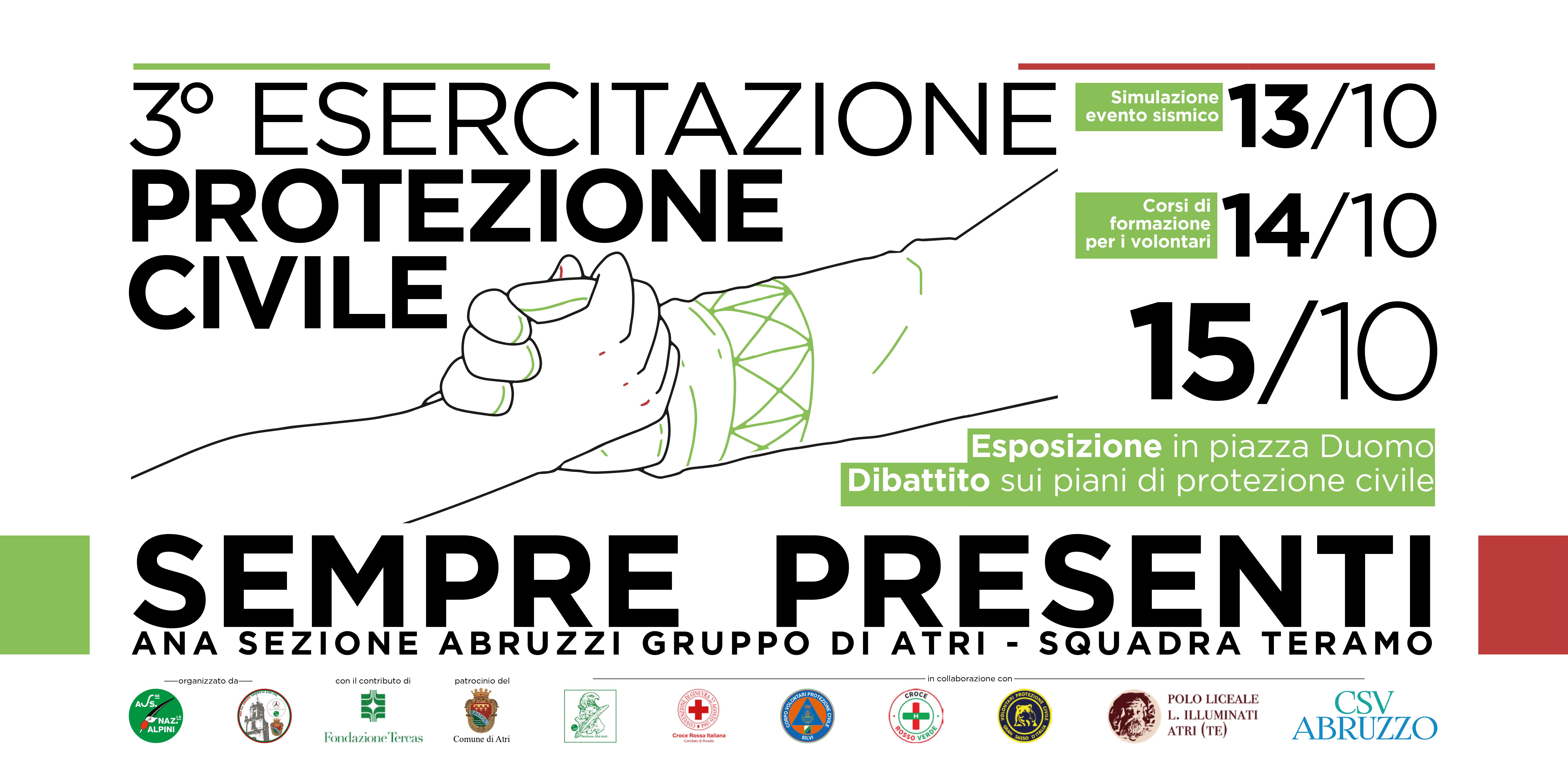 L'evento è realizzato con il contributo della Fondazione Tercas, il patrocinio del Comune di Atri e in collaboraione con Croce Rossa Italiana comitato di Roseto, Croce Rosso Verde Atri, Corpo Volontari Protezione Civile Silvi, Volontari Gran Sasso d'Italia e Centro Servizi Volontariato Teramo.